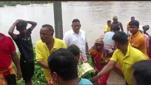 On Sunday, BJD MLA Debi Mishra visited the submerged Ma Bhattarika temple in Odisha’s Cuttack district to take stock of the situation. The BJD legislator went around the flooded premises of the temple, located on the banks of Mahanadi river at Sasanga village in his Badamba constituency, and interacted with servitors and local people.