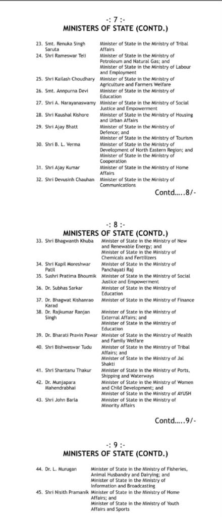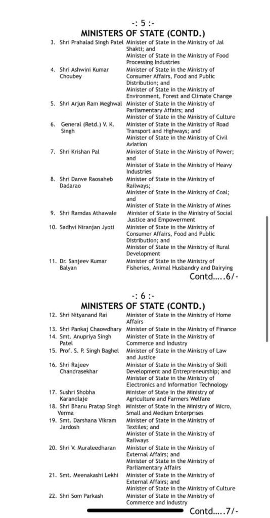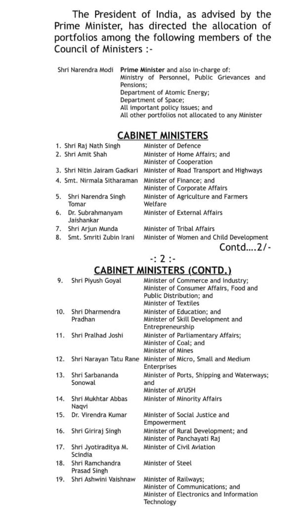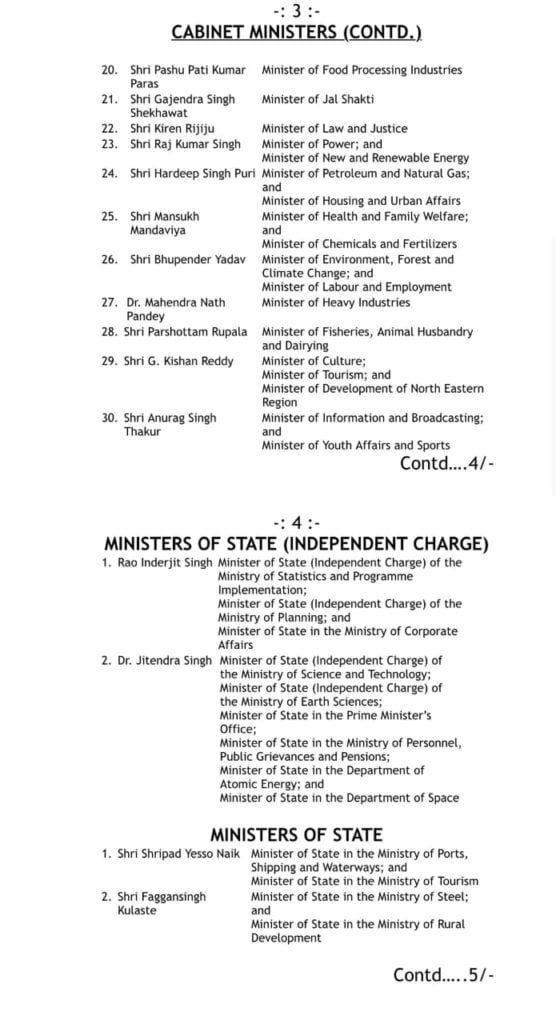 The Prime Minister had inducted 36 new faces in his first cabinet expansion in his second term. Among the new ministers in the list, Anurag Thakur gets I&B Minister as well as Sports and Youth Affairs ; Jyotiraditya Scindia Ministry of Civil Aviation; Kiren Rijiju Ministry of Law and Justice.