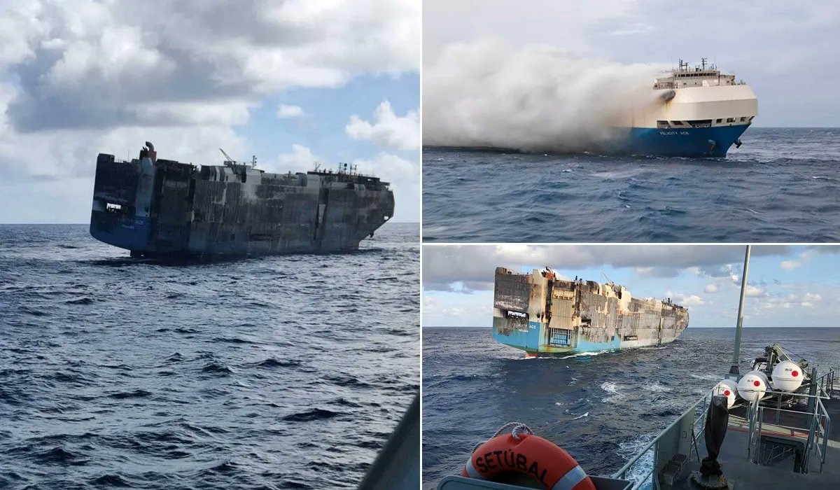 On June 3, the vessel reported smoke from its stern, near the deck loaded with about 70 fully electric vehicles and nearly 730 hybrids, part of a 3,000‑vehicle cargo en-route from Yantai, China, to Lázaro Cárdenas, Mexico. The US Coast Guard crews received the distress signal and responded with air support but were unable to extinguish the blaze. After sustaining uncontrollable fire damage, the crew abandoned ship on June 5 and was rescued by a merchant vessel, with no casualties reported.