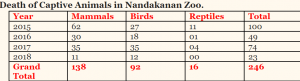 Death of animals in captivity between 2015 t0 2018 stood at 246. But the information collected through RTI showed that the number of death had come down from 100 in 2015 to 23 in 2018. In 2017, it stood at 74.