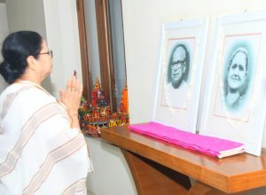 The Bengal CM reciprocated with a shawl specially prepared by Biswa Bangla. She also paid respect to his parents, Biju Patnaik, former chief minister of Odisha, and Gyan Patnaik by presenting a zamadani saree.