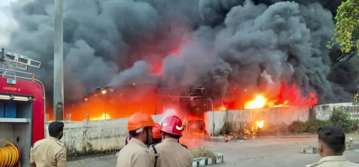 Thick black smoke billowing into the sky was visible from several kilometres away. Fire and rescue units from Thrissur and neighbouring parts of the district rushed to the spot and launched an intensive firefighting operation to prevent the blaze from spreading further.
