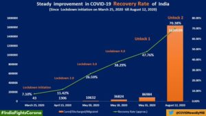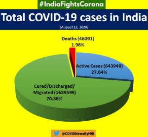 According to the Union Health Ministry, 70.38 per cent (16,39,600) people have recovered while 27.64 per cent (6,43,948) are still under treatment.