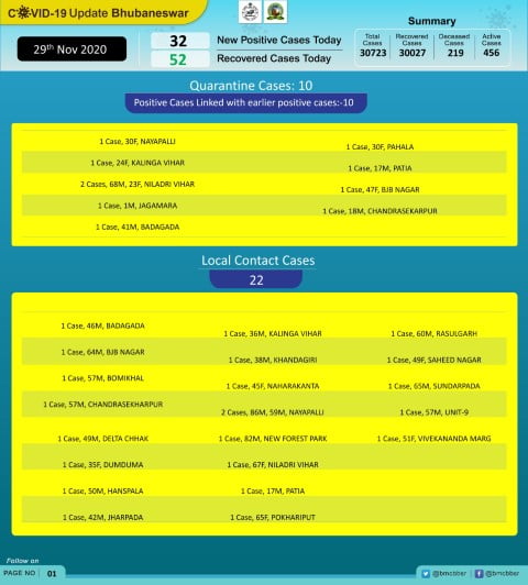 With 219 deaths and 30027 recoveries, Bhubaneswar now has 456 active cases.