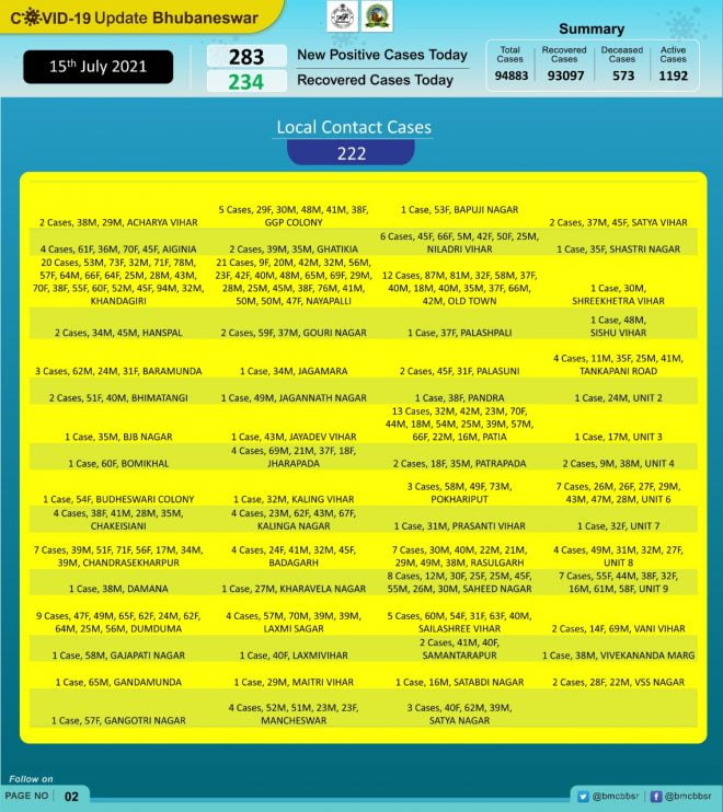 Of the new cases, 61 were from quarantine and 222 were local contacts, Bhubaneswar Municipal Corporation (BMC) stated in its tweet.