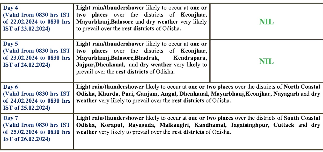 According to the midday bulletin, some places in the state are also likely to experience rain from February 22. However, there will no charge change in the night temperature across the state during the next 4-5 days.