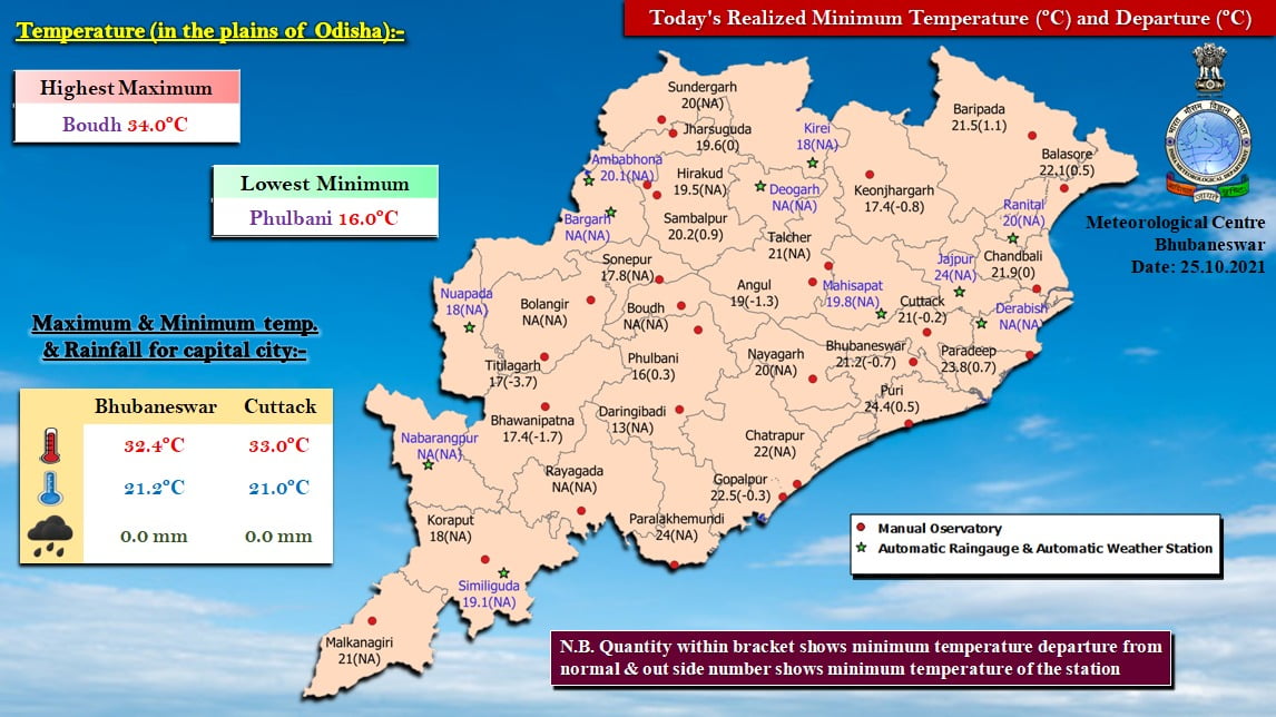 The twin cities of Bhubaneswar and Cuttack recorded 21 degree Celcius.