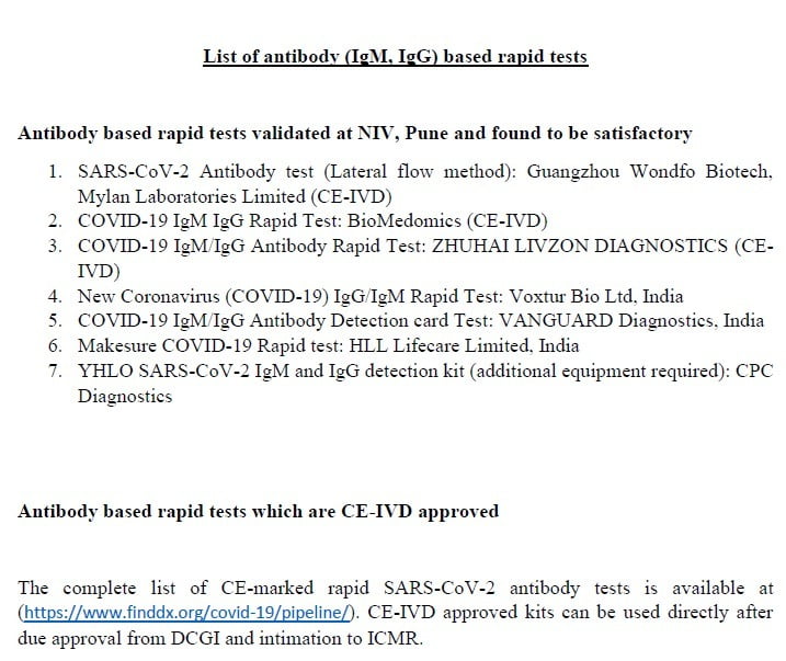Pune: The National Institute of Virology (NIV), Pune has validated 7 antibody-based rapid tests and found them to be satisfactory for COVID19, said an official statement. Here's a list: