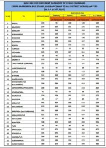 The STA has shared the fare from Bhubaneswar to district headquarters as following: