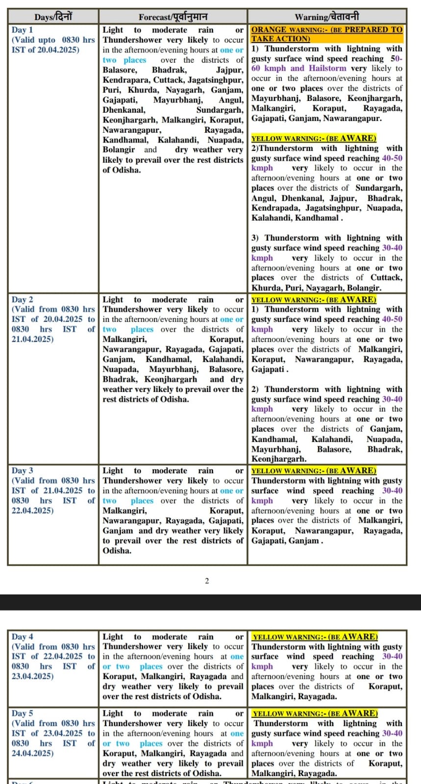 On April 20, the IMD issued an orange warning along with a yellow warning for different districts. While an orange alert is in place especially for north and south Odisha, a yellow warning is in place for coastal Odisha.