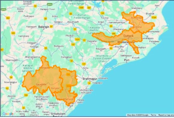 Orange warning has been issued for Gajapati, Jajpur, Rayagada and Cuttack.