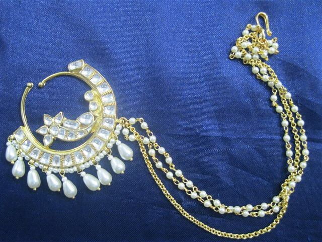 Ring/hoop – Whenever there is a huge occasion at home, women wear these large hoops or rings that have a decorated chain attached to it. Hoops enhance the looks like nothing else. They are also often worn by models walking the ramp, with of course, extra details on them.