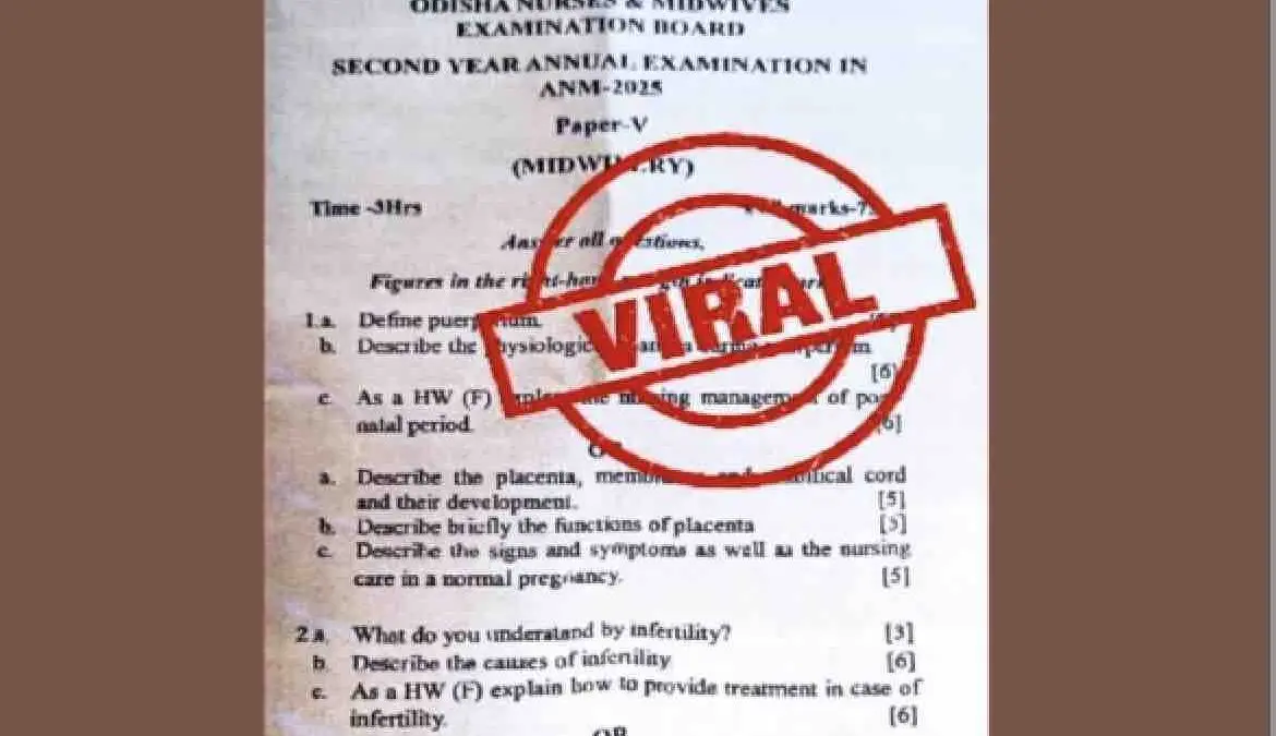 Bhubaneswar: The Director of Medical Education and Training (DMET) in Odisha on Friday postponed Auxiliary Nurse Midwifery (ANM) examination, which was scheduled to begin at 2 pm, amid question paper leak allegations.