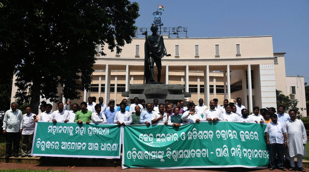 Soon after the adjournment of the House, the BJD members staged a dharna under the Mahatma Gandhi statue on the Assembly premises.