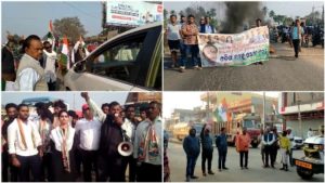 In Nabarangpur, the activists blocked the National Highway and took out a bullock cart rally in Umerkote town with an effigy of the Prime Minister.