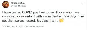 The SP took to Twitter to mention about his COVID infection. “I have tested COVID positive today,” he said in his Twitter handle.