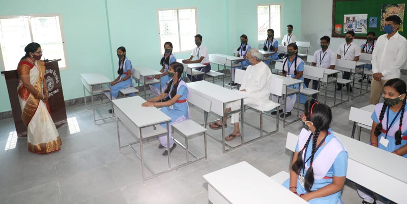 The Chief Minister, who was on a one-day visit to Ganjam district to launch the distribution of BSYK health smart cards, visited the school in his constituency where he spent time with the students and interacted with them. Though a Sunday and schools are closed, special arrangements were made for the CM’s visit.