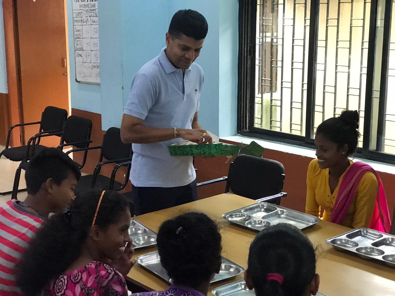 Secretary to Chief Minister (Transformation and Initiatives) VK Pandian visited the Sports Hostel at Kalinga Stadium here and distributed sweets among the inmates.
