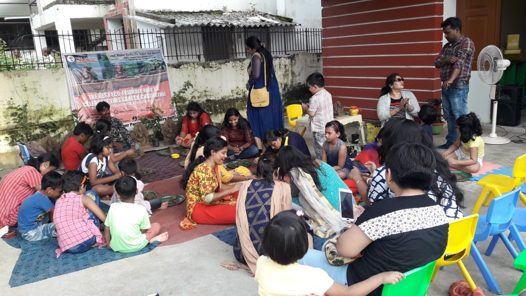 The enthusiastic participants made their own Ganesha idol with non-chemical based eco-friendly red soil under the guidance of sculptor Minaketan, informed school founder Monalisha Mohapatra.