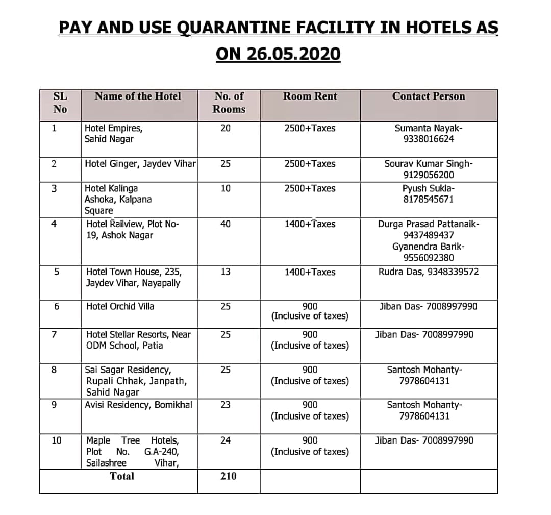 As of now, around 500 people have opted for paid quarantine in Bhubaneswar.