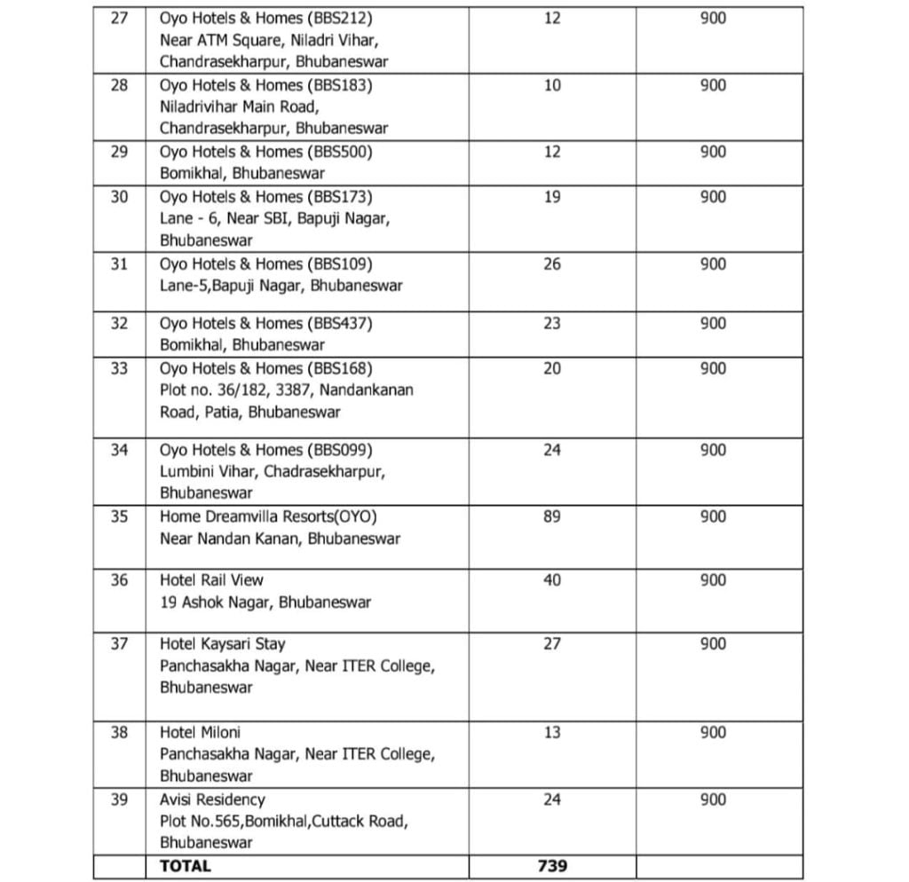 Bhubaneswar: The Bhubaneswar Municipal Corporation (BMC) has identified 56 hotels in the Odisha capital to serve as paid quarantine facilities for those returning from outside Odisha amid the coronavirus-induced lockdown.