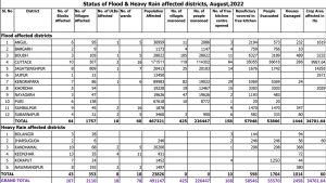 The 12 flood-affected districts are Angul, Bargarh, Boudh, Cuttack, Jagatsinghpur, Jajpur, Kendrapada, Khurda, Nayagarh, Puri, Sambalpur and Subarnapur. The six rain-affected districts are Balangir, Jharsuguda, Kandhamal, Keonjhar, Koraput and Nabarangpur.