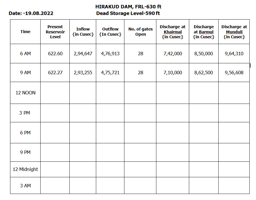 The SRC had then said that efforts are on to bring down the water level in Hirakud reservoir to 622 ft by Friday evening.
