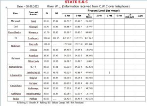 The water flow at Mundali in Cuttack was 8,35,672 lakh cusecs, at Barmul 7,86,500 lakh cusecs and at Khairamal 5,90,000 lakh cusecs in the Mahanadi river system.