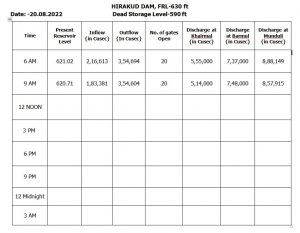 After the water level at Hirakud Dam fell below 622 ft by Friday noon, Special Relief Commissioner (SRC) Pradeep Kumar Jena said the target was to bring it further down to 620.5 ft by Saturday morning.