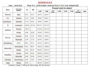 The water flow at Mundali in Cuttack was 8,57,915 lakh cusecs, at Barmul 7,48,000 lakh cusecs and at Khairamal 5,14,000 lakh cusecs in the Mahanadi river system.