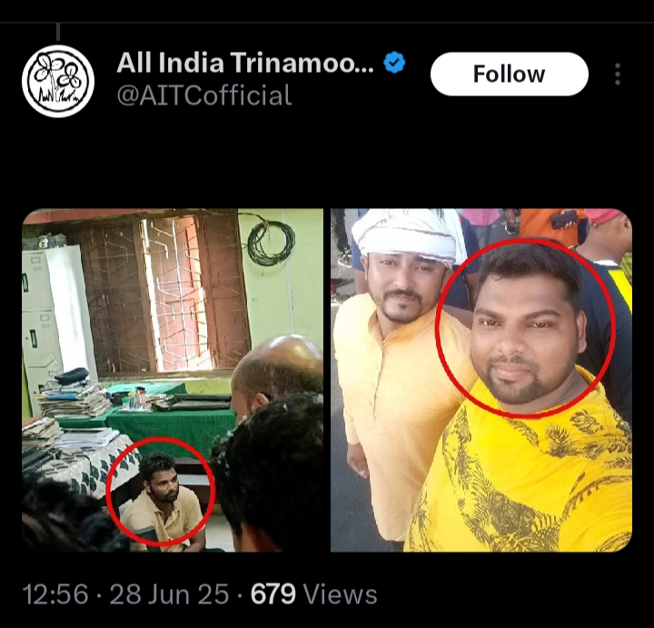 “Locals caught him while he was trying to flee and handed him over to the police. The party that claims to be the guardian of law and order is busy sheltering criminals!” it was posted on the official X handle of the Trinamool Congress, along with photographs and a video clip.