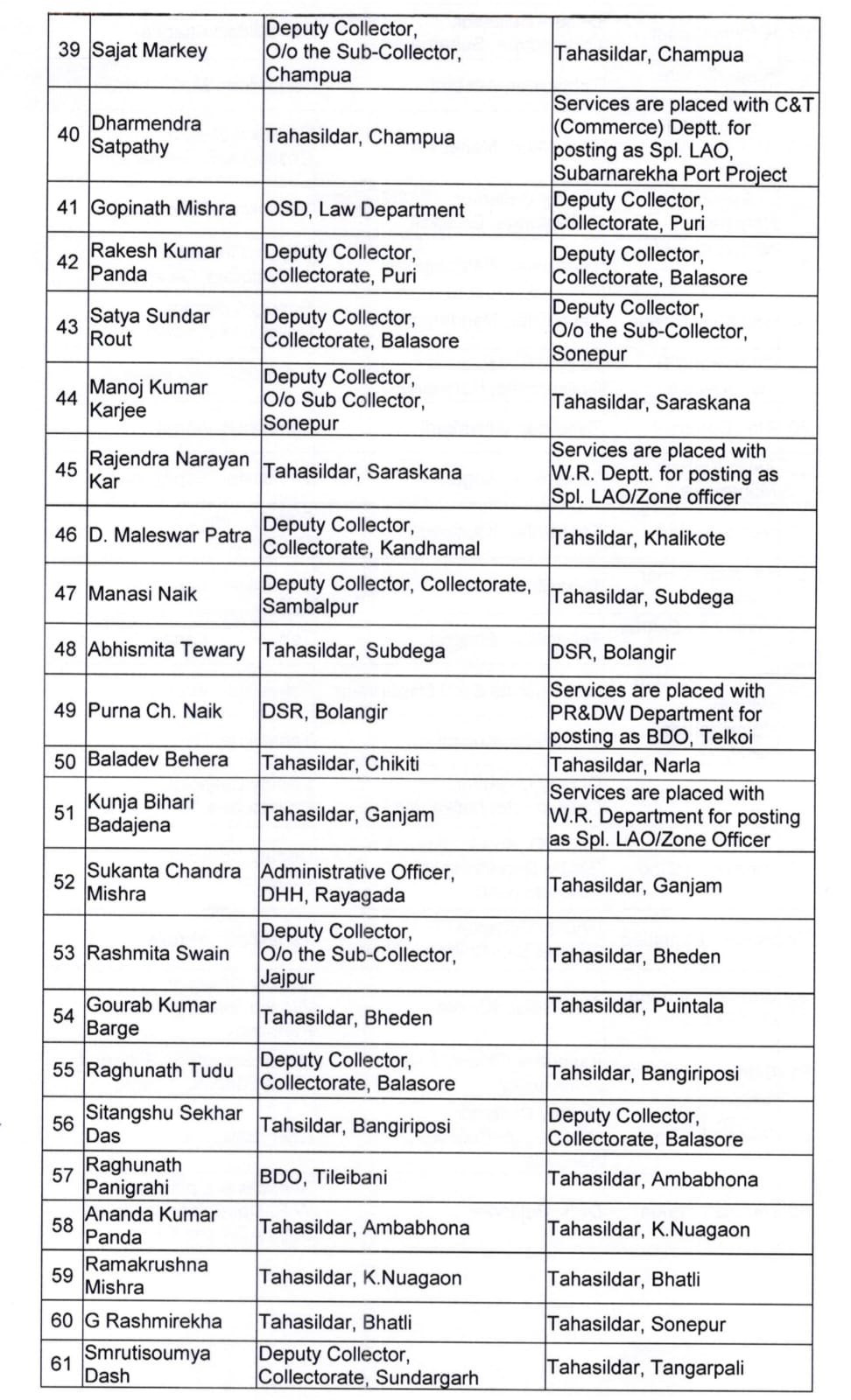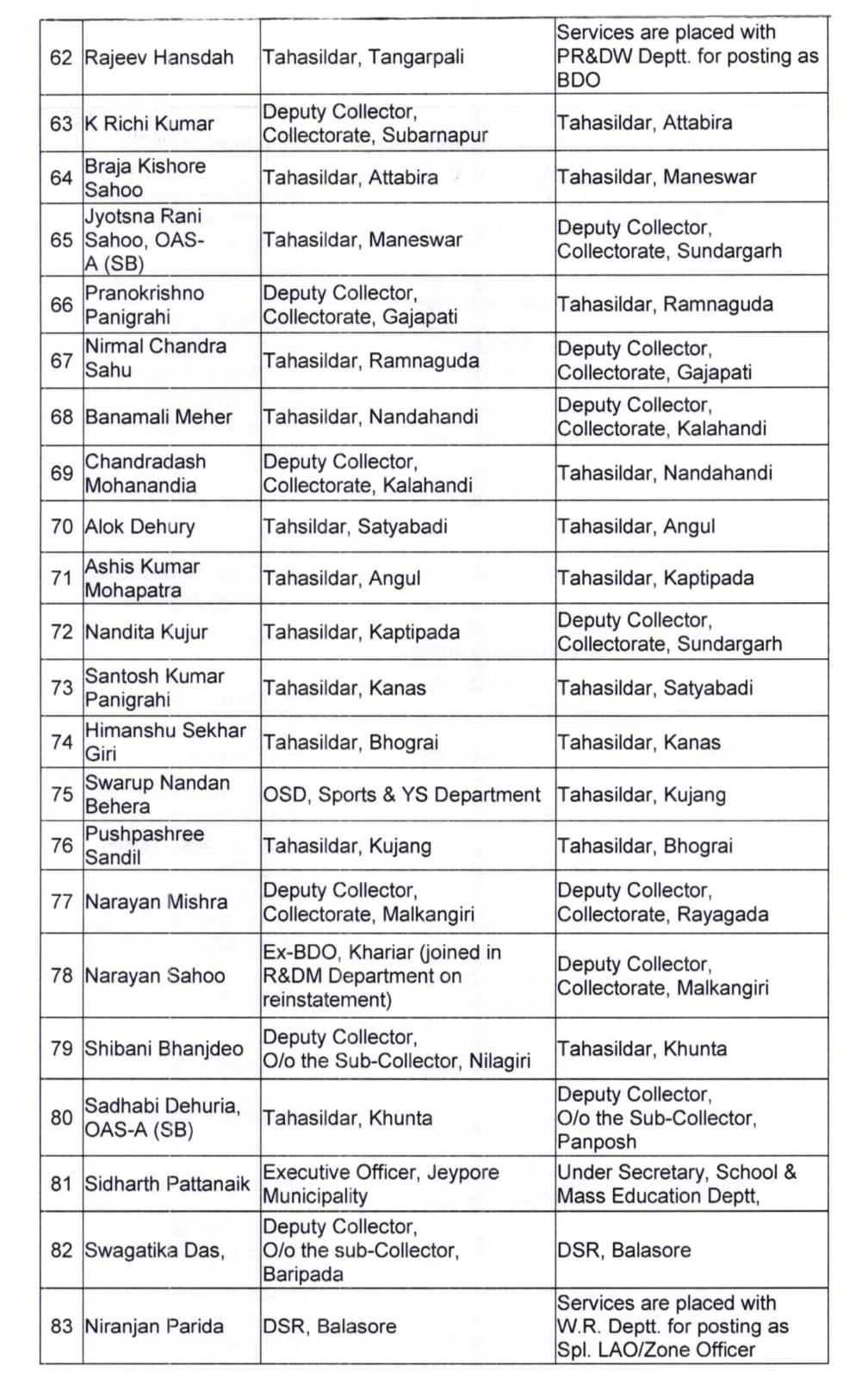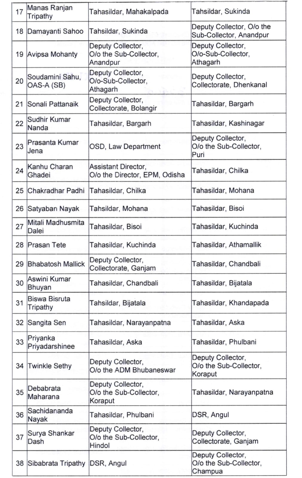 Bhubaneswar: In a a major reshuffle in the OAS cadre, the Odisha government has assigned new postings to 118 officers. Here's the list issued by the Revenue and Disaster Management department regarding transfer of the officers: