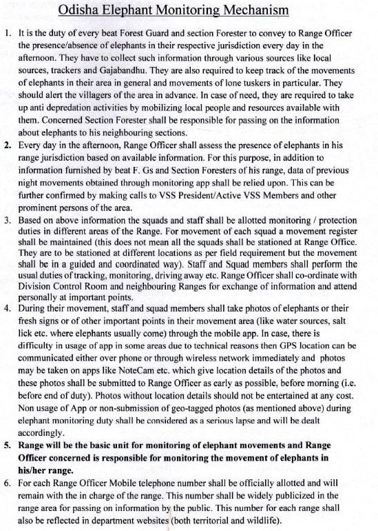 The office of Principal Chief Conservator of Forest (wildlife) and Chief Wildlife Warden, Odisha, has directed all the DFOs to follow the revised guidelines scrupulously and monitor the movement of elephants as to reduce man-elephant conflict.