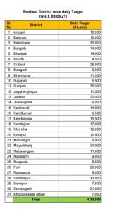 Bhubaneswar: The state government has revised the daily target for COVID vaccination for all the districts and Bhubaneswar urban region.