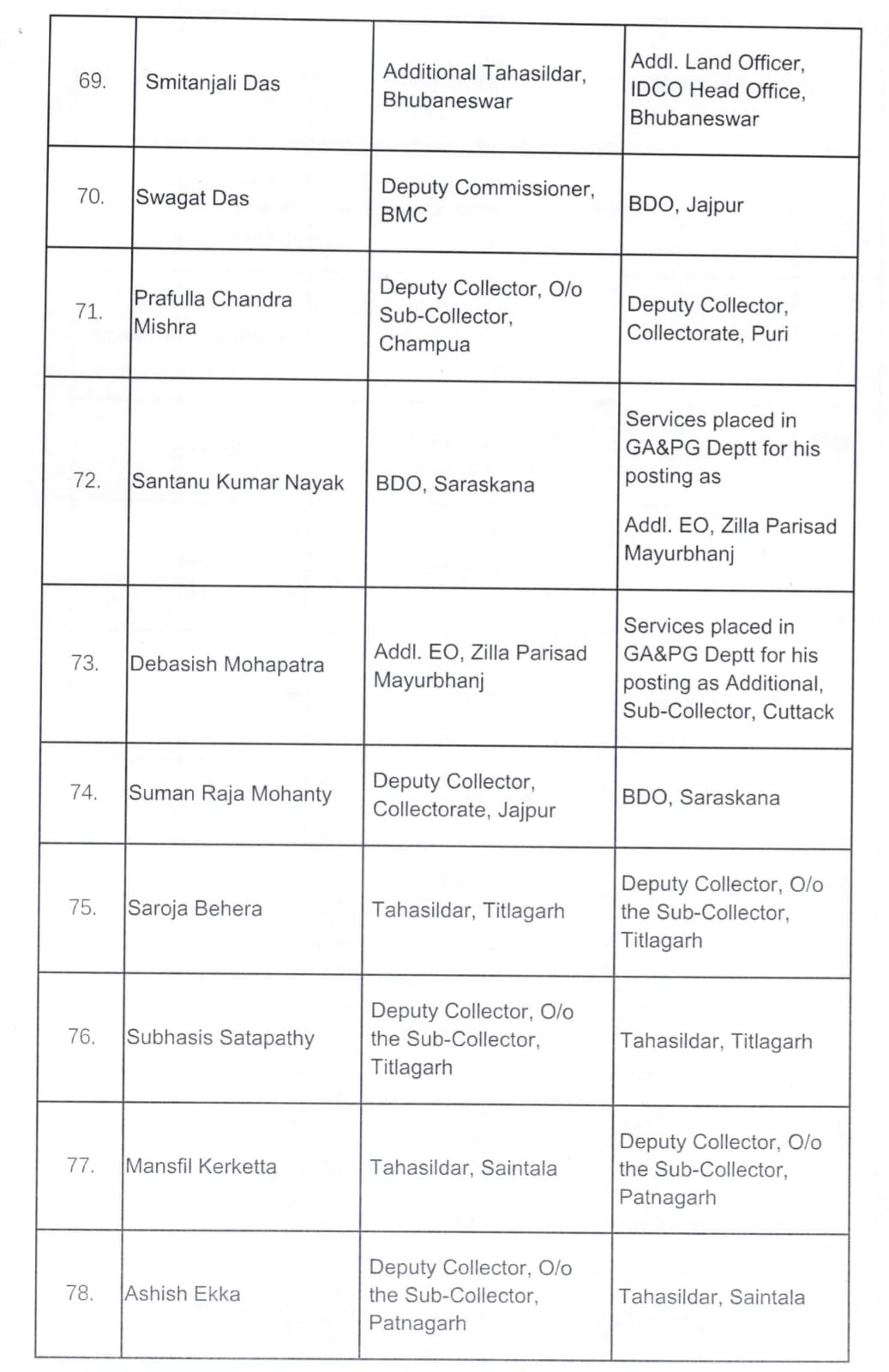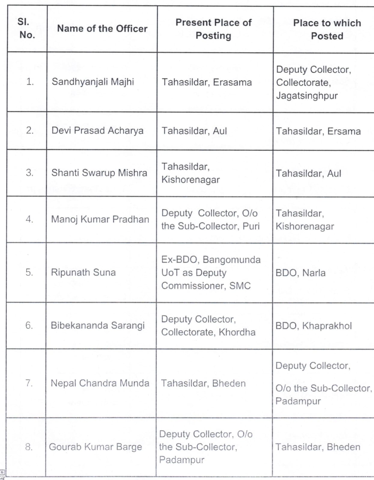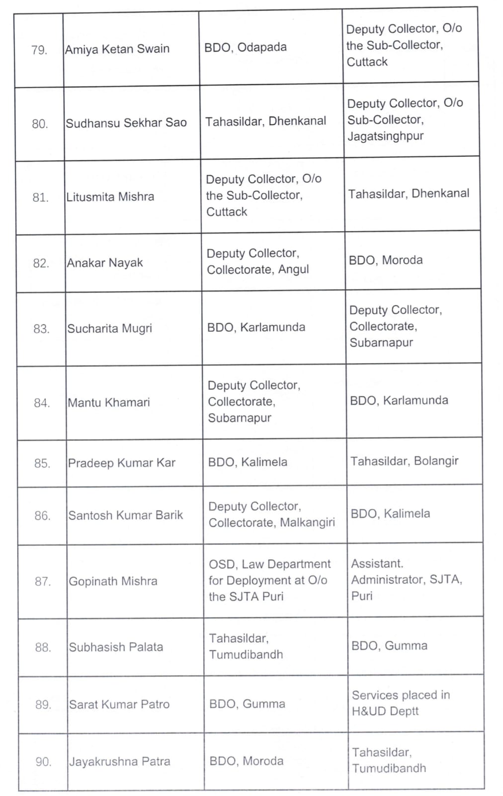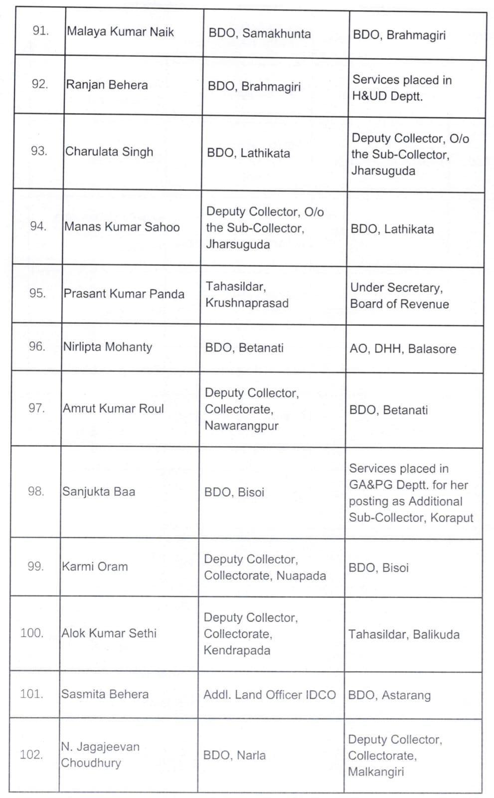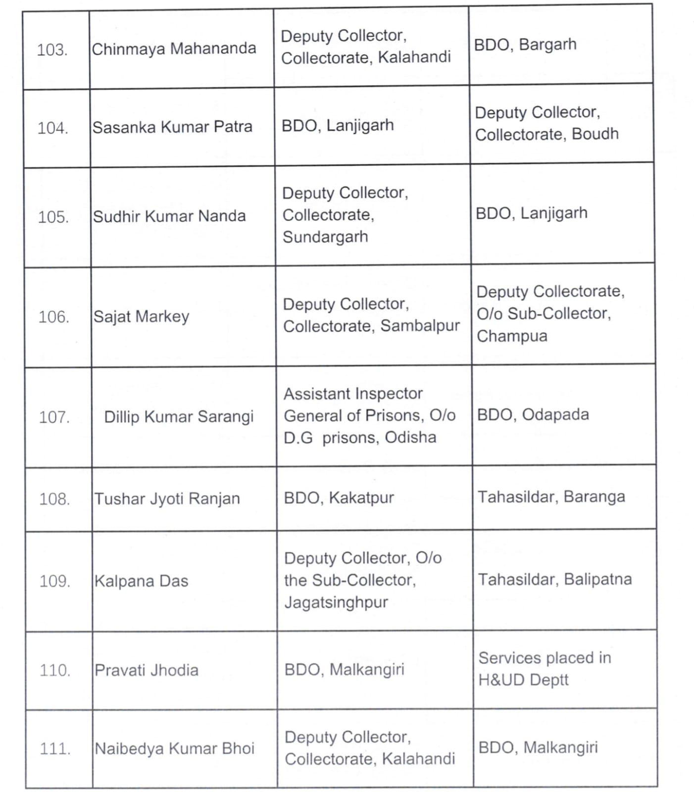 Bhubaneswar: After an overhaul in IAS and IPS cadre, the Odisha government has effected a major reshuffle in the OAS cadre with the transfer of 111 officers.