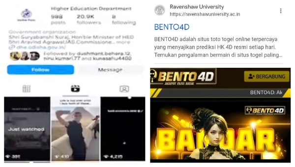 Similarly, the official website of Ravenshaw University in Cuttack has also been hacked, raising concerns among students and faculty members. Attempts to access the site redirected users to a suspicious betting platform called ‘BENTO4D’ instead of the university’s regular interface.