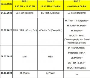 The tests will be conducted in three shifts (9 am-11 am, 12.30 pm-2.30 pm and 4 pm-6 pm) on first three days. On the final day of the  schedule, the examination will have two shifts. The admit cards will be available for downloading from June 27.