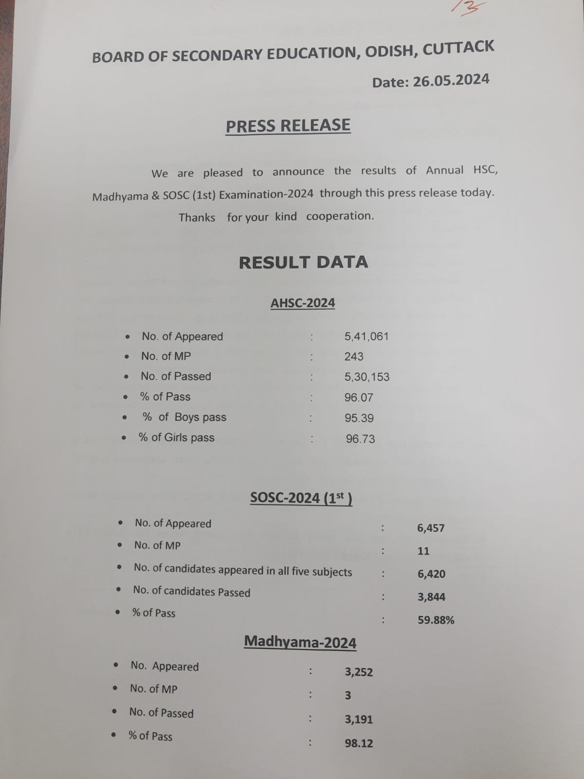 According to the BSE Odisha, the board result link is active since 11:30 am at bseodisha.ac.in. Students, who do not have access to internet, can also get the results via SMS to 5676750 by typing OR10 < Roll No >. Heads of the secondary schools were given access to download the Tabulation Register (TR) of their schools from 12:30 pm onwards by entering their user ID and password.
