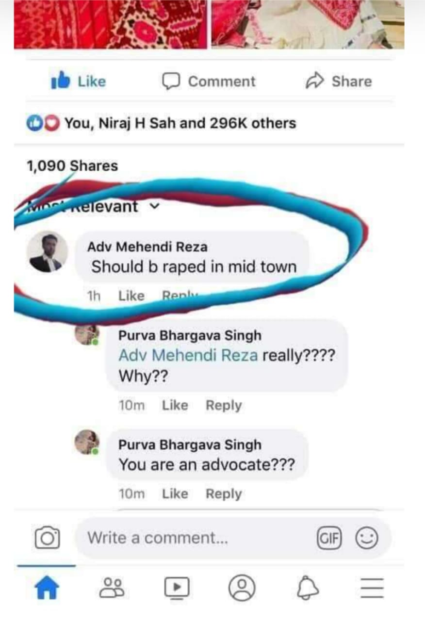 Among the numerous response on the post was one by Advocate Mehindi Reza, a practising lawyer of Jharsuguda district court in Odisha.