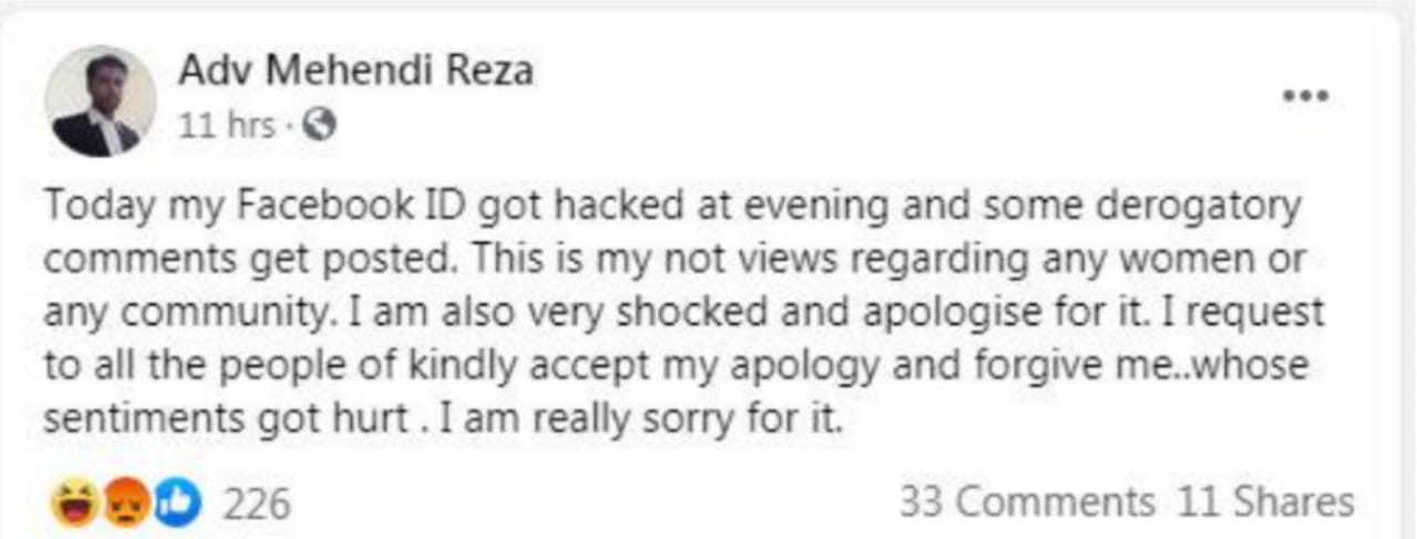 As the comments drew brickbats, the lawyer posted another message stating that his Facebook has been hacked. He has since left the social media platform.