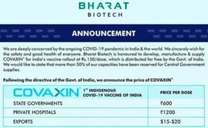 As announced by the Serum Institute of India, a single dose Covishield vaccine will be available to state governments at Rs 400 and private hospitals at Rs 600.