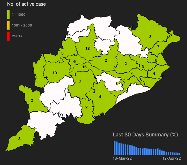 While nine districts – Nayagarh, Keonjhar, Puri, Deogarh, Jharsuguda, Koraput Rayagada, Sundaragrh and Kalahandi- were from coronavirus till April 12, Deogarh and Sundargarh will be back in the Green zone with new cases being detected in the last 24 hours.