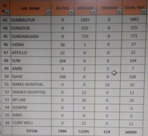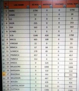 The tests are being conducted in 11 private laboratories, state-run medical colleges and hospitals and AIIMS-Bhubaneswar, RMRC, ILS and IISER.