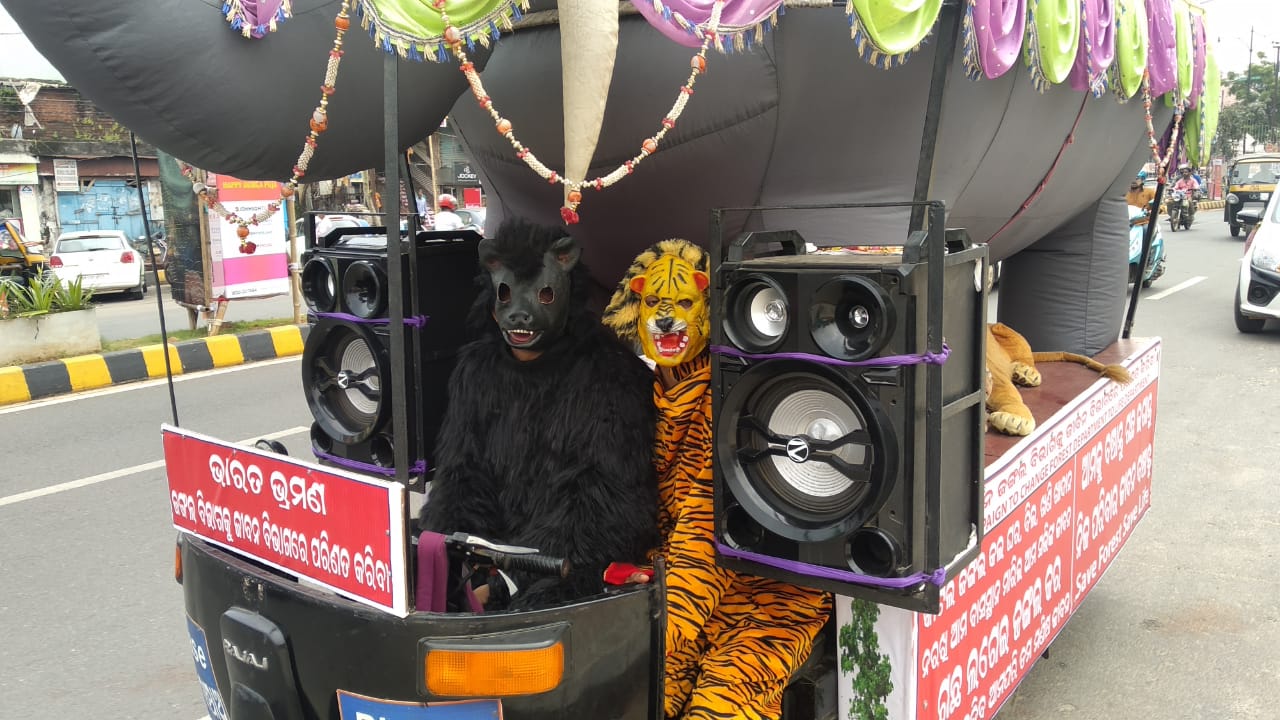 Angul: Dillip Kumar Sahu embarked on an awareness drive to save trees in an autorickshaw from his native place, Pallahra in Angul district, on October 2.