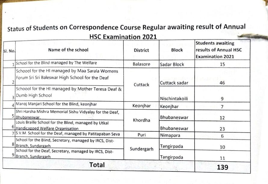 Bhubaneswar: The future of 139 students with disabilities in Odisha hangs in the balance with the Board of Secondary Education (BSE) failing to publish their matric results.