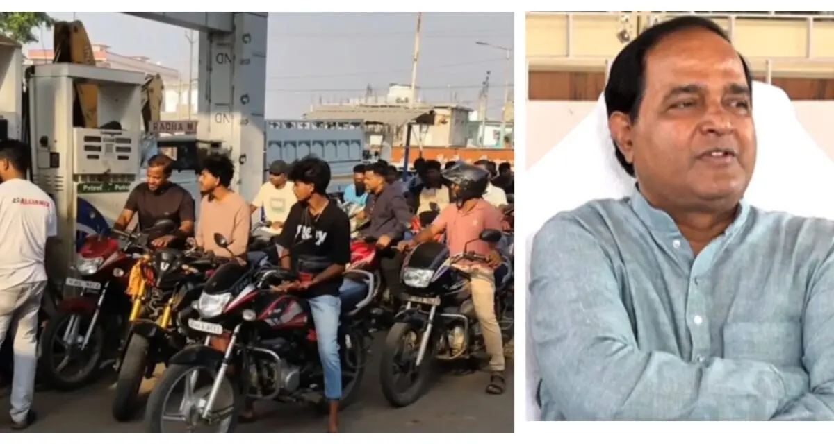 As per information, massive crowd gathered at petrol pumps in the district after rumours spread that petrol and diesel stocks were running out amid the ongoing war situation. The situation led to panic buying at some fuel stations in the area.