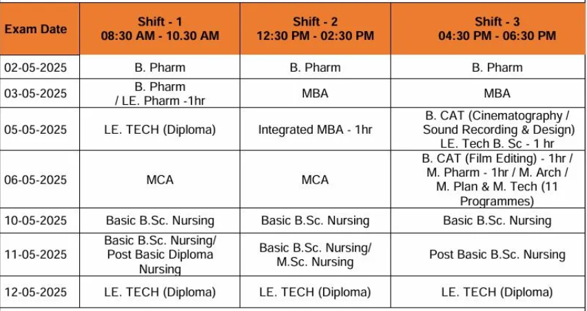 The examination will be held in three shifts: 8.30 am to 10.30 am, 12.30 pm to 2.30 pm, and 4.30 pm to 6.30 pm.