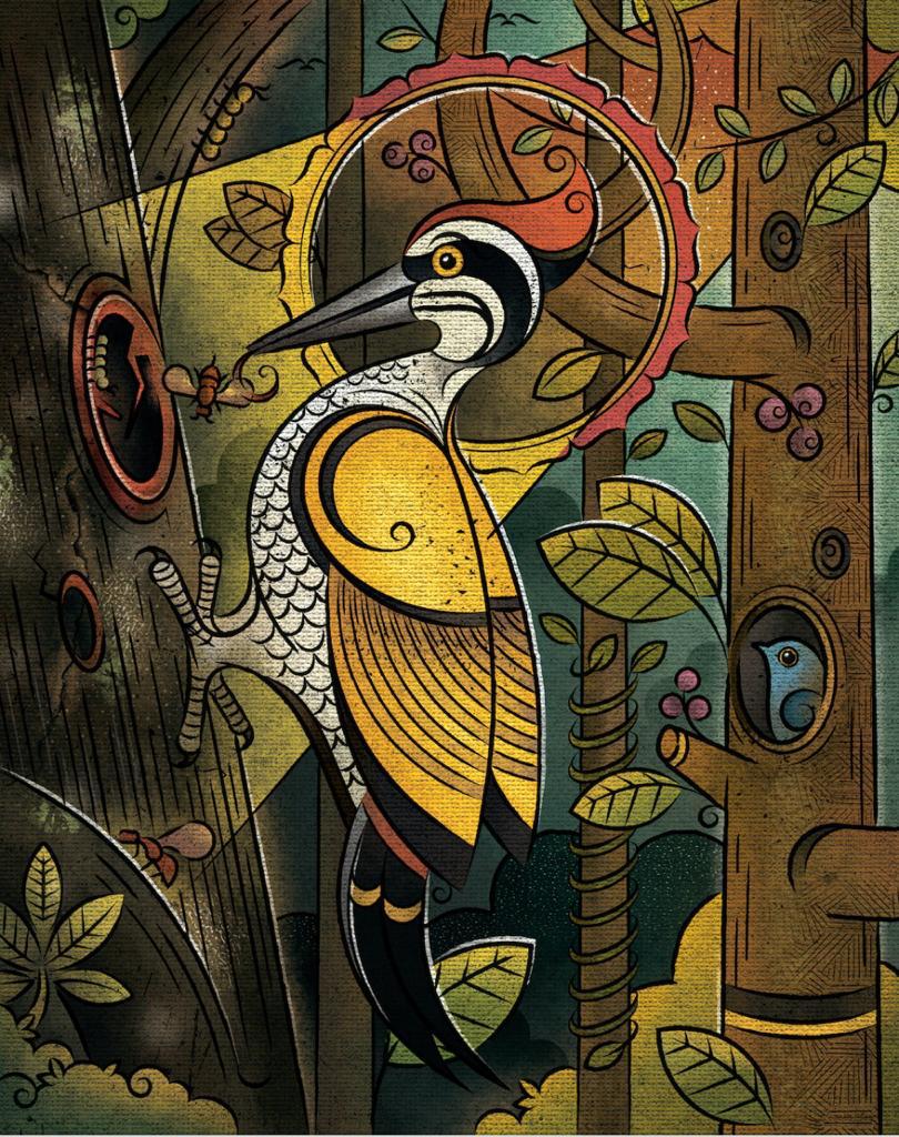 “In another painting, I showcased the relationship between woodpeckers and trees. The woodpeckers peck holes in the trees. I explained the reason of it in my painting. Woodpeckers are known as forest doctors. These birds make the holes in some part of the trees and eat harmful insects. This way they save the trees from poisonous insects,” he explained.