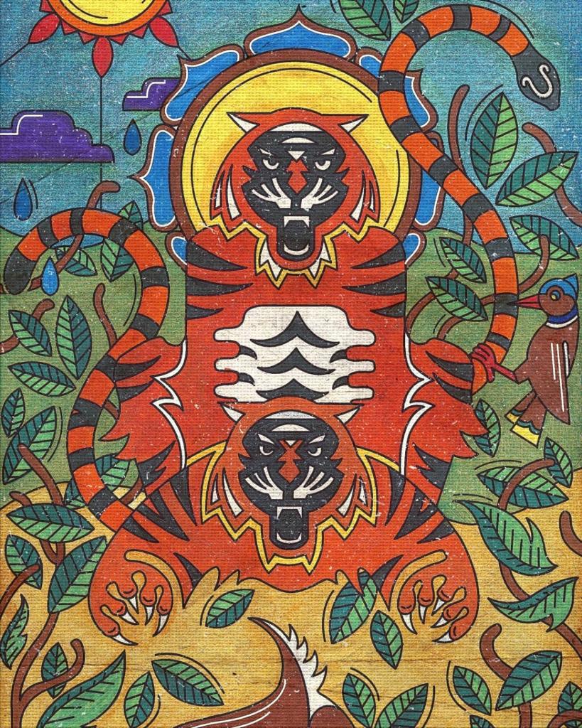 “Simultaneously, I am working on another series, ‘Folk Indica’. I am doing paintings of the animals and birds through the folk art of nine states. I have started with tigers. When we see a group of tigers, we cannot differentiate them individually. Using the diverse folk art of India, I am making the tigers’ painting with nine states’ regional art and craft, like, Uttarakhand’s Aipan art, Odisha’s Pattachitra, Bengal’s Kalighat, Arunachal Pradesh’s Pankh art and Andhra Pradesh’s Kalamkari, and Maharashtra’s Warli art, etc.”