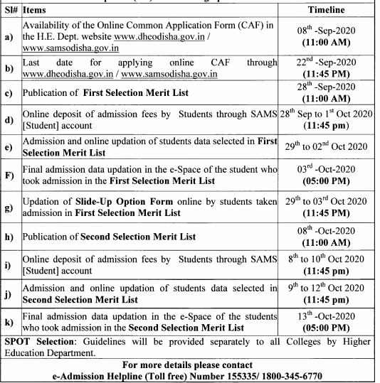 The applicants are required to fill up the common application form for admission. and call on Sanjog Helpline (155335 and 1800-345-6770) for assistance. “Any change in the timelines will be published in newspapers and www.dheodisha.gov.in and www.samsodisha.gov.in,” the notification added.